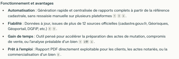 Le dossier TABELIO est un rapport complet parcellaire automatisé, composé de plusieurs documents. Valeur Géometre 200 euros HT